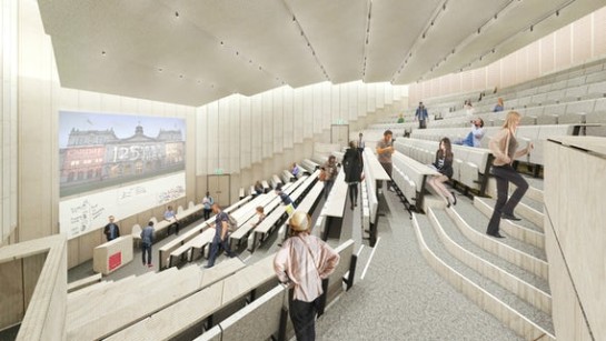 The new building is a central hub for student support services and offers modern, flexible social learning spaces and a technology-rich 550-seat lecture theatre.